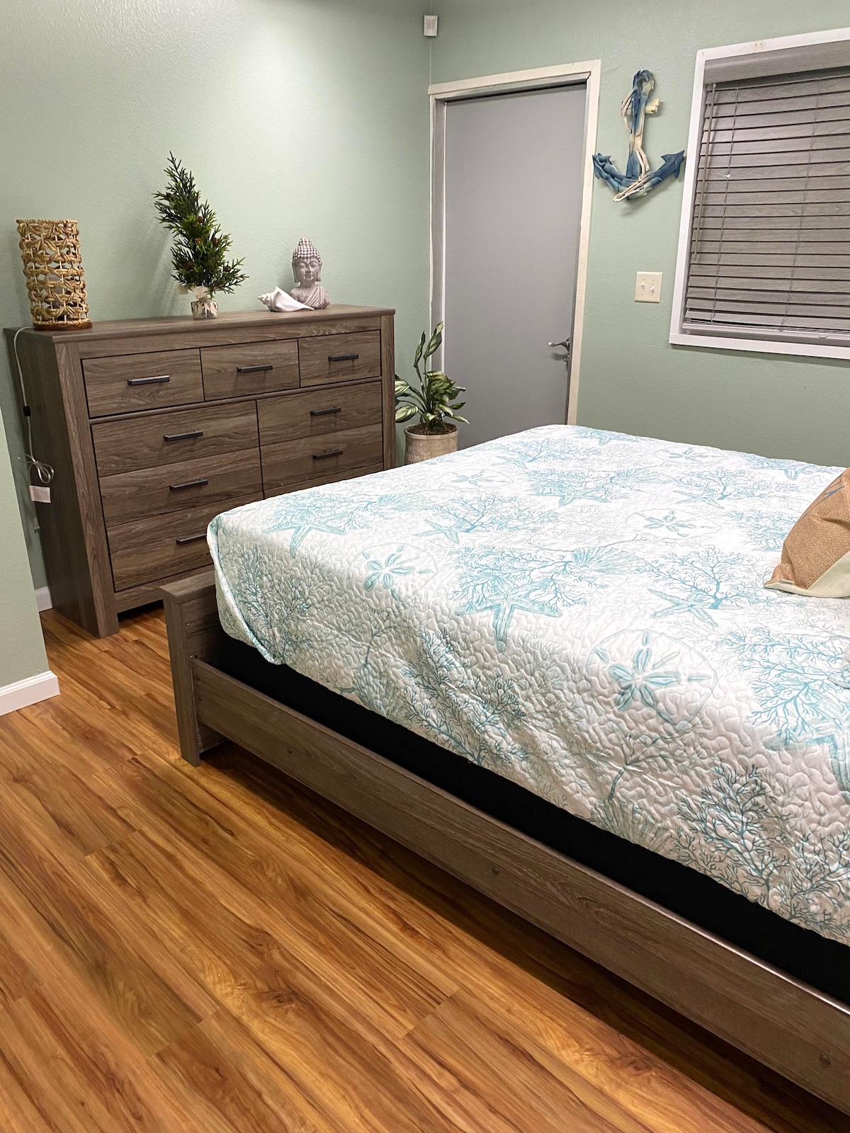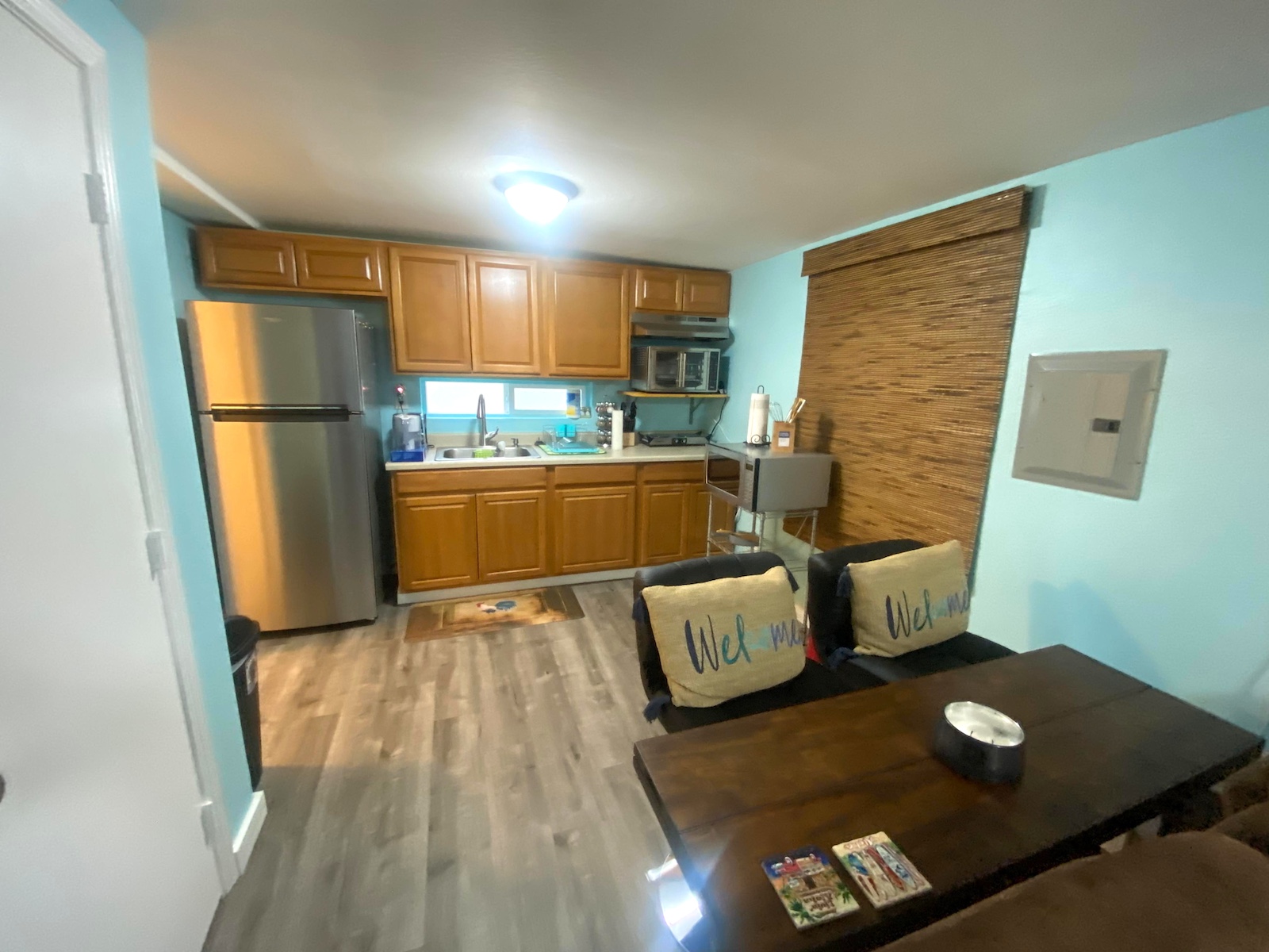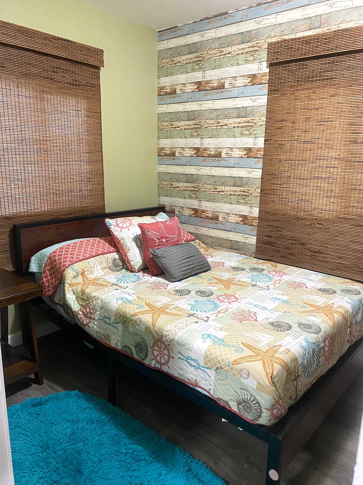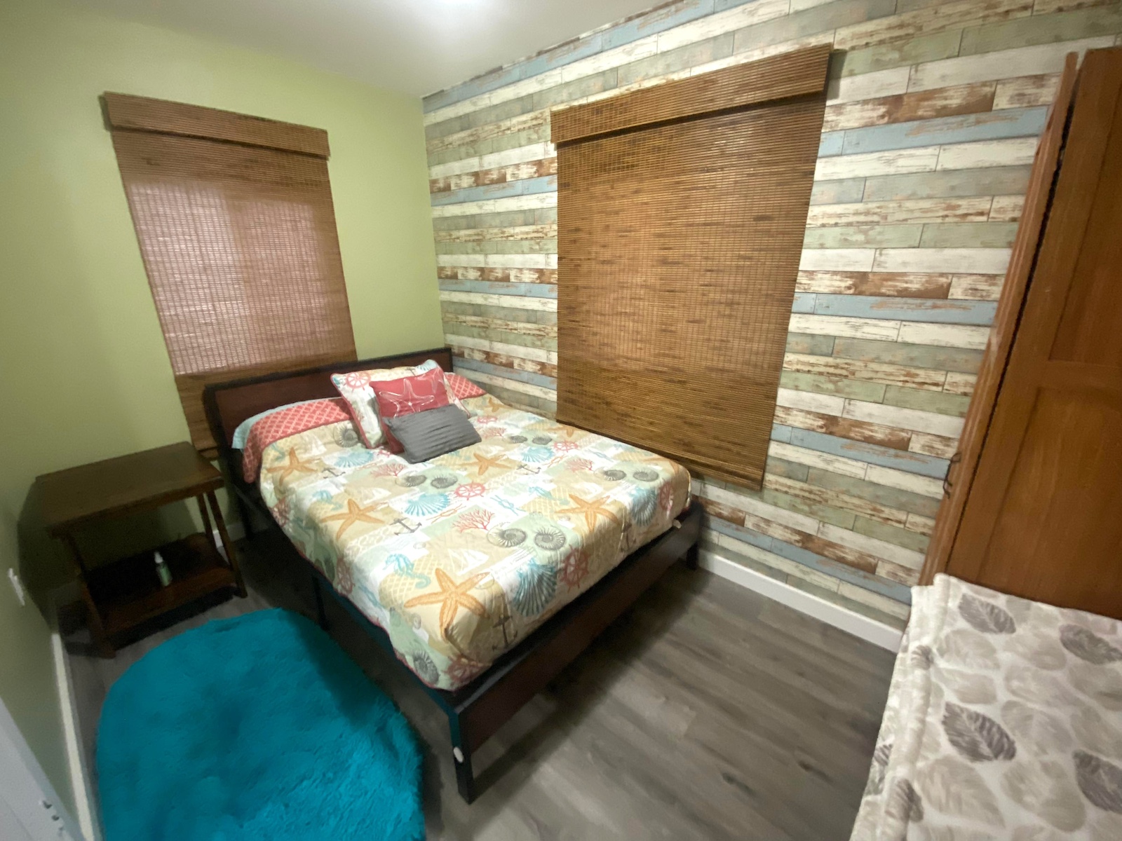 Trzy pokojowy domek, z jedna łazienka. Duża sypialnia ma dwuosobowe lóżko (rozmiar Queen), drugi pokój ma dwa jednoosobowe lóżka (rozmiar twin), trzeci  pokój ma rozkładana kanapę, oraz TV.