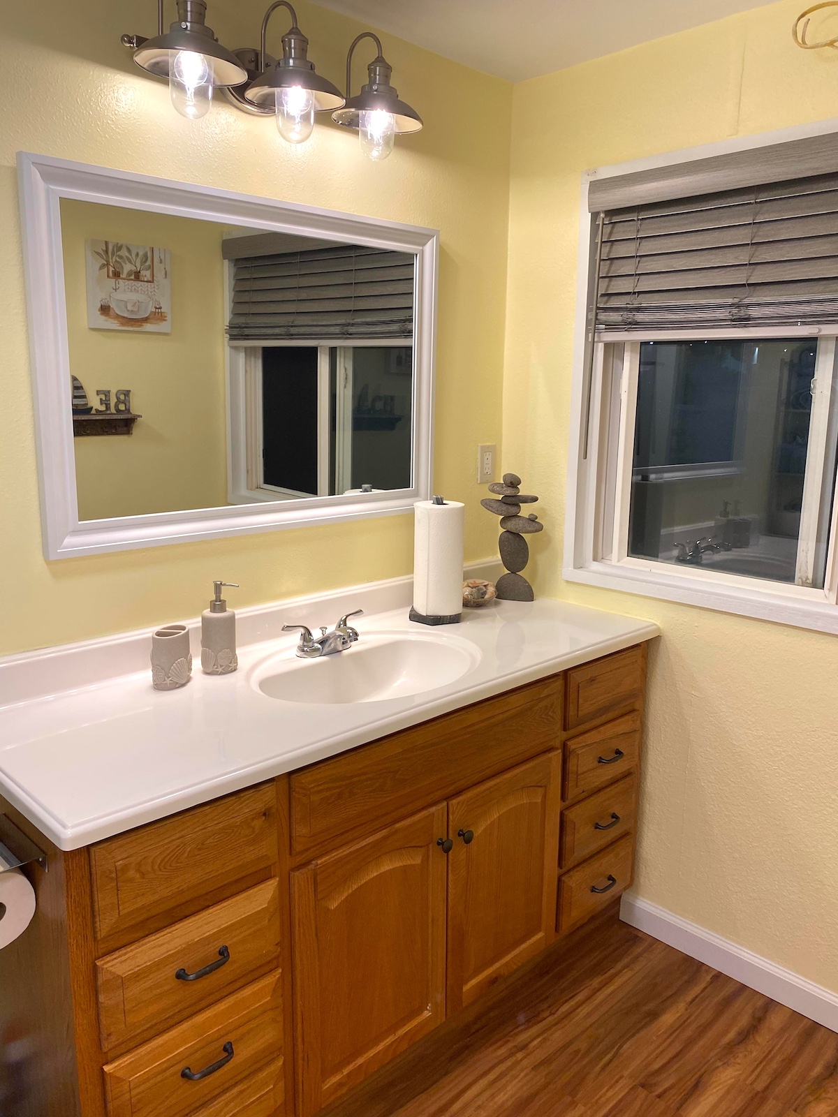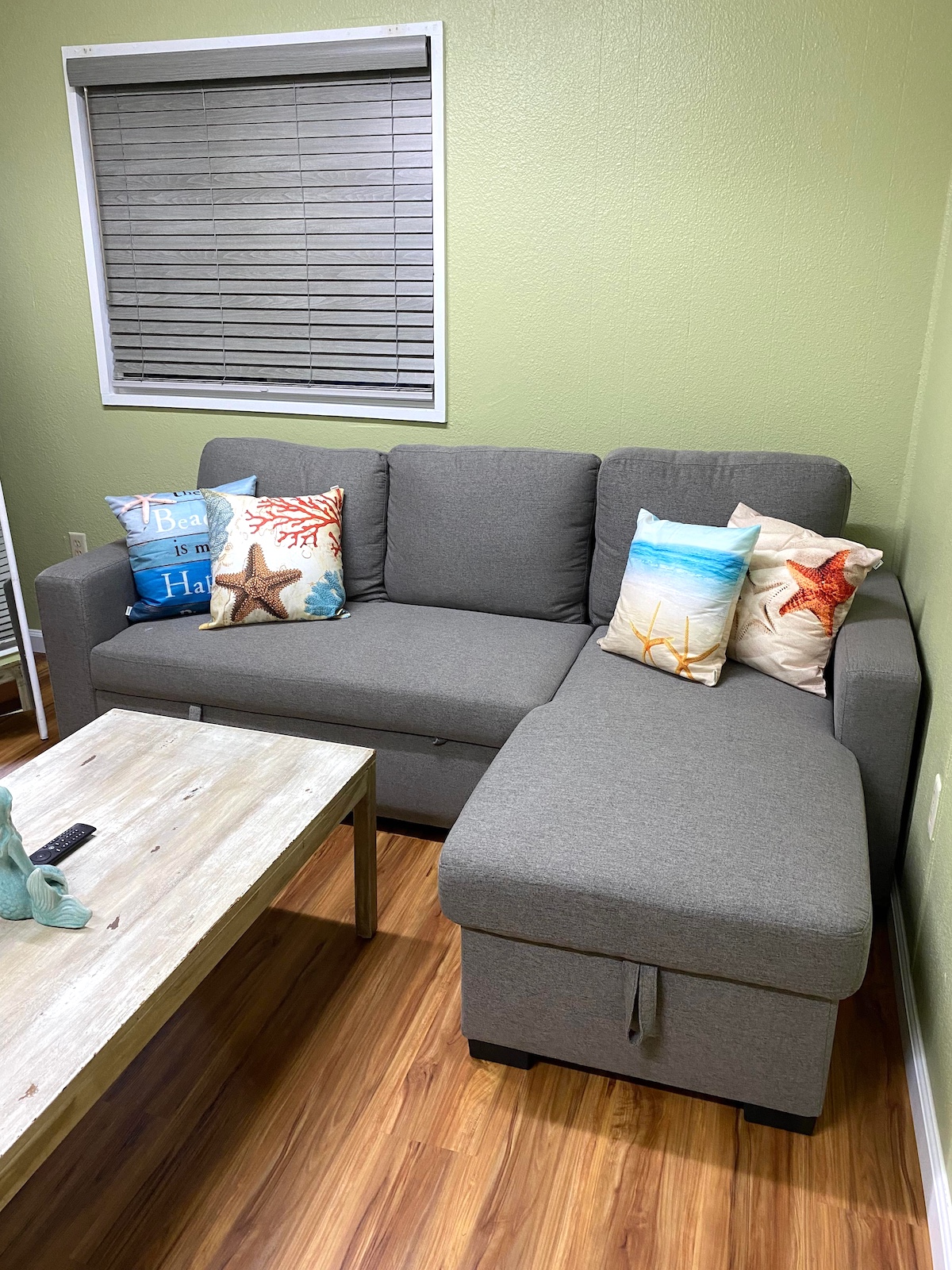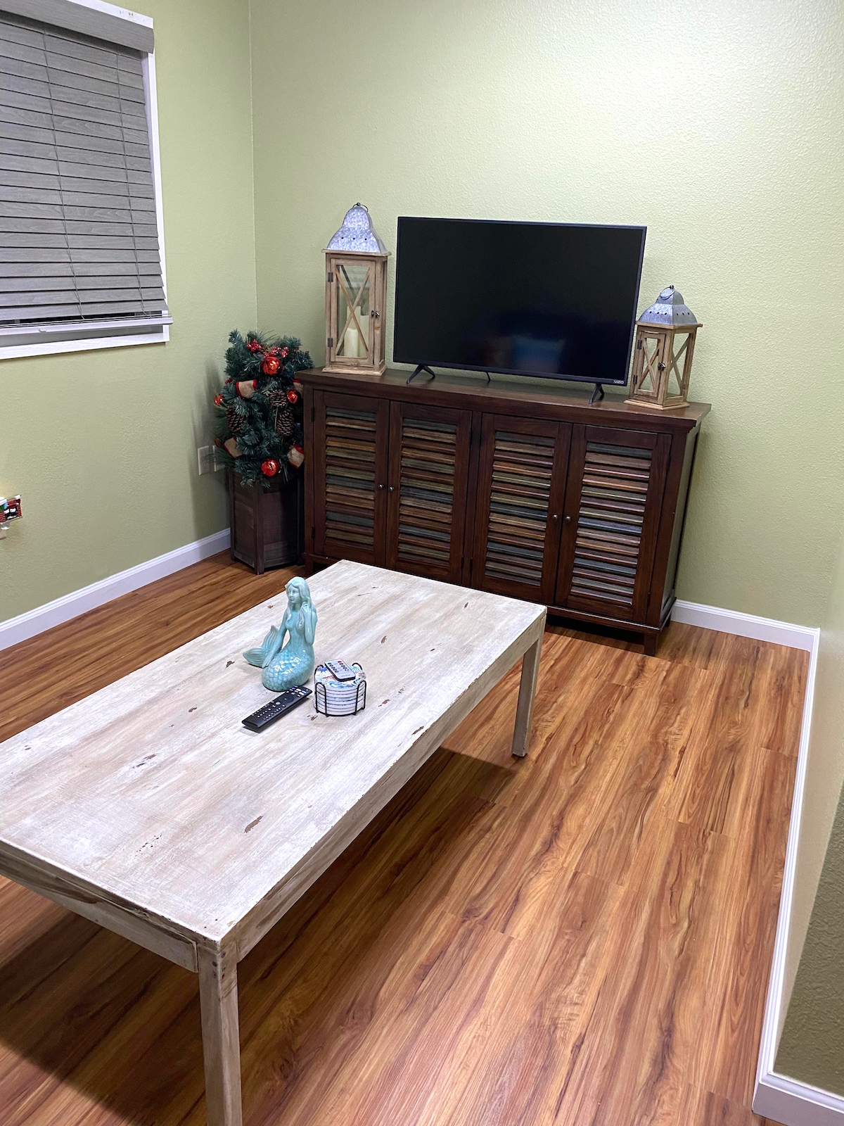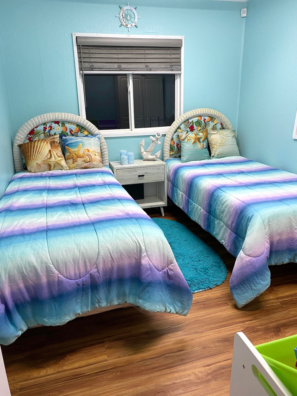 Trzy pokojowy domek, z jedna łazienka. Duża sypialnia ma dwuosobowe lóżko (rozmiar Queen), drugi pokój ma dwa jednoosobowe lóżka (rozmiar twin), trzeci  pokój ma rozkładana kanapę, oraz TV.